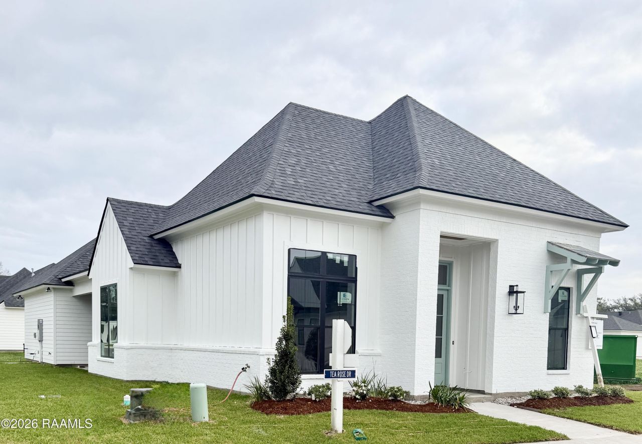 Refined living awaits in this 3-bedroom, 2-bath residence located in the gatedMagnolia Trace community of Broussard. Offering 1,888 sq ft of thoughtfullydesigned open-concept living, the home features soaring cathedral ceilings,expansive windows, and a sleek fireplace adds contemporary style andambiance. The designer kitchen showcases stainless-steel appliances, island,and walk-in pantry. The primary suite is a private retreat with customcabinetry, double vanities, soaking tub, and separate shower. A split floor planenhances privacy, while the covered side patio with built-in gas grill inviteseffortless entertaining. Community amenities include mature oak trees, pondwith fountain, pet park, playground, basketball court, and complimentary lawnservice. Estimated date of completion ~ April 2026.
