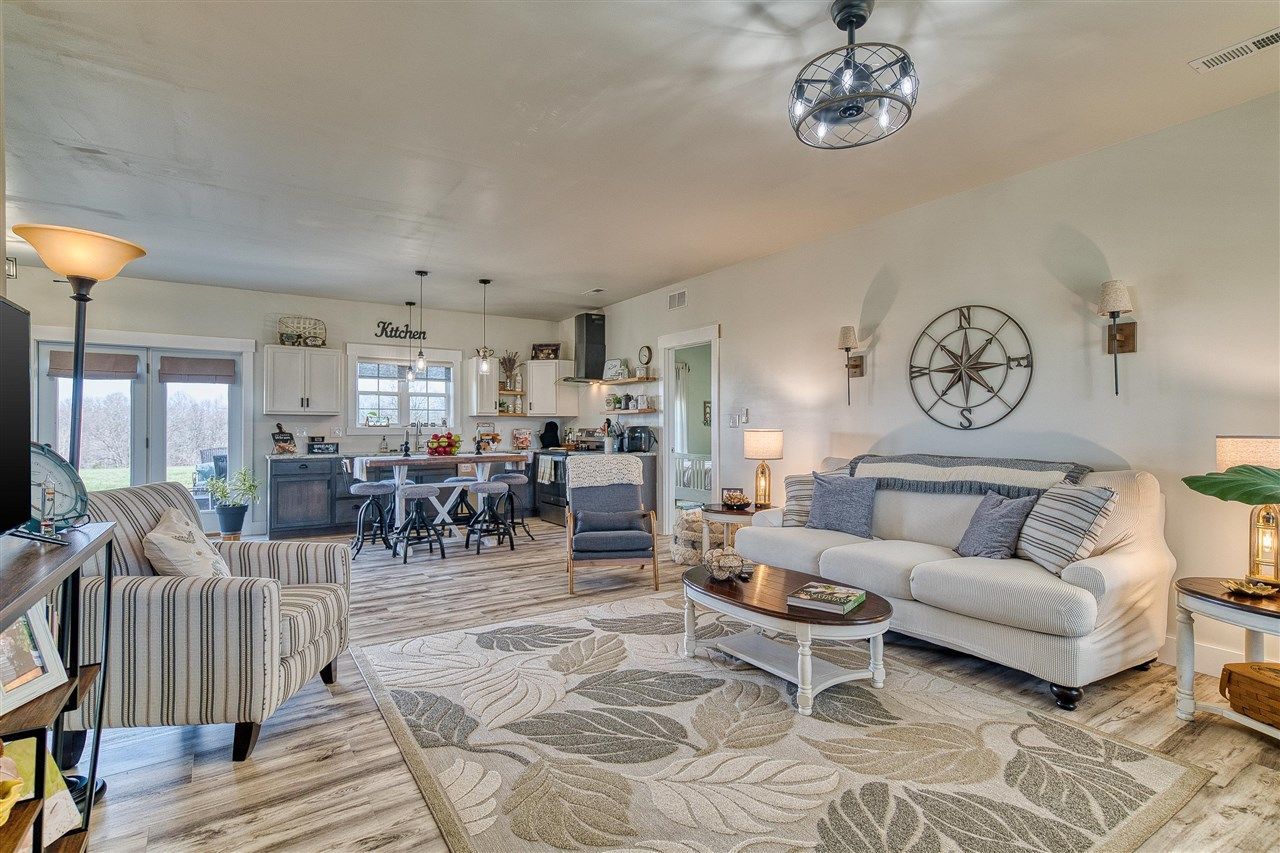 Like-new barndominium built in 2024 situated on a .7-acre lot, offering approximately 1,500 square feet of well-designed living space. This 3-bedroom, 2-bath home features a desirable open, split floor plan that provides both functionality and privacy. The spacious living area flows seamlessly into the kitchen and dining space, creating an inviting layout ideal for everyday living and entertaining. The kitchen is highlighted by upgrade custom cabinetry, granite countertops, and a large pantry that provides exceptional storage and organization. High-end luxury vinyl plank flooring runs throughout the home, adding durability and style. The primary suite is generously sized and offers a comfortable retreat within the home. Additional interior features include a laundry room with a utility sink for added convenience. Exterior amenities include a covered front porch, a concrete driveway, and a one-car garage. Built on a slab foundation, this home provides low-maintenance living while still offering modern finishes and quality construction. The .7-acre lot provides room to enjoy outdoor space while maintaining a manageable footprint.