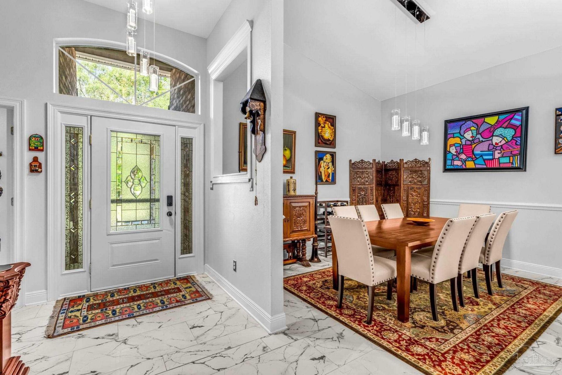 A truly one-of-a-kind home located in the sought-after private, gated community of Heron's Forest! This modern 3-bedroom, 3-bath home offers stylish upgrades and exceptional indoor-outdoor living. Nearly the entire home has been updated within the last three years, featuring sleek porcelain flooring, fresh finishes, and a contemporary design throughout. The kitchen is a standout with sleek granite countertops, modern reflective white cabinets with a European door style, upgraded Bespoke Samsung appliances, and a large island ideal for meals, cooking and entertaining. High ceilings, plant ledges, built-in cabinets, accent lighting! The spacious primary suite offers a private retreat with dual vanities, a walk-in closet, and a spa-inspired shower with steam feature. All bathrooms have been renovated with new vanities, tiled walk-in showers, and updated lighting. Enjoy year-round relaxation in the lanai with an indoor, solar-heated pool, complemented by both a conditioned Florida room and a sunroom off the kitchen - perfect for additional living, dining, or home fitness space. Covered-screened deck and backyard patio provide peaceful spaces to relax and enjoy nature & wildlife. Heron's Forest is an active lifestyle community where residents enjoy a pool, pickleball, tennis and basketball courts, gazebo, picnic area, nature walking trails and trail access to Trout Point Beach. This home offers the perfect blend of modern updates, flexible space, and community living in one of Pensacola's most desirable neighborhoods. A must see!